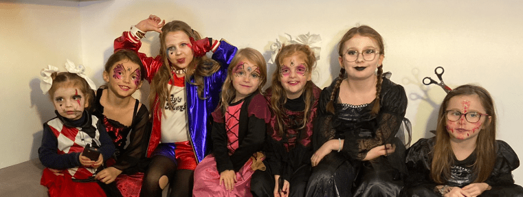 Clown effrayant, sorcière, pirate, Frankenstein, zombie, squelette, fantôme, héro.ïne de film… je privilégie des looks rapides à réaliser tout en gardant un coté ludique pour les plus petits.